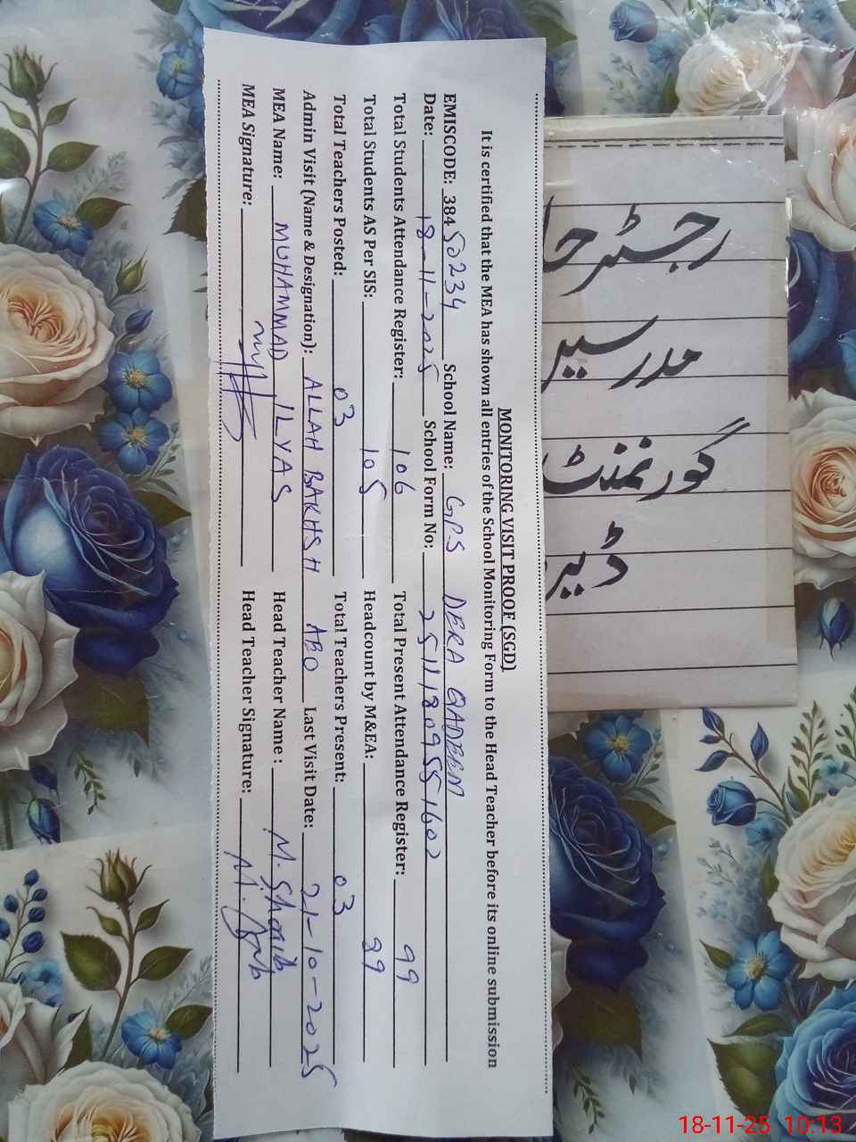 | Attendance Register | Head Teacher | MEA with School | Visit Proof |