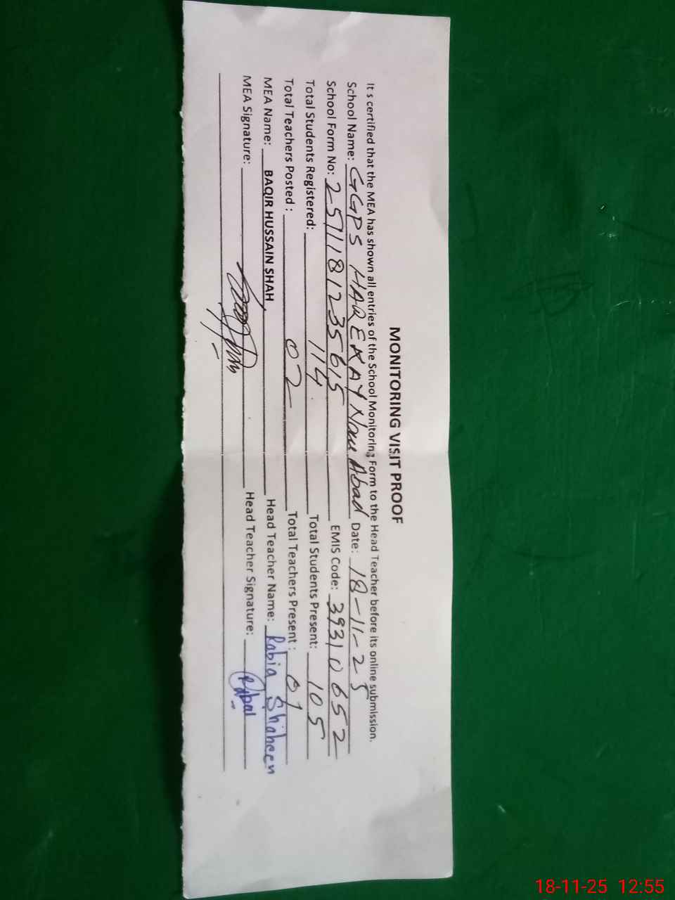 | EMIS Code: 39310652 | Name of School: GGPS HARIKEY NAU ABAD | |||