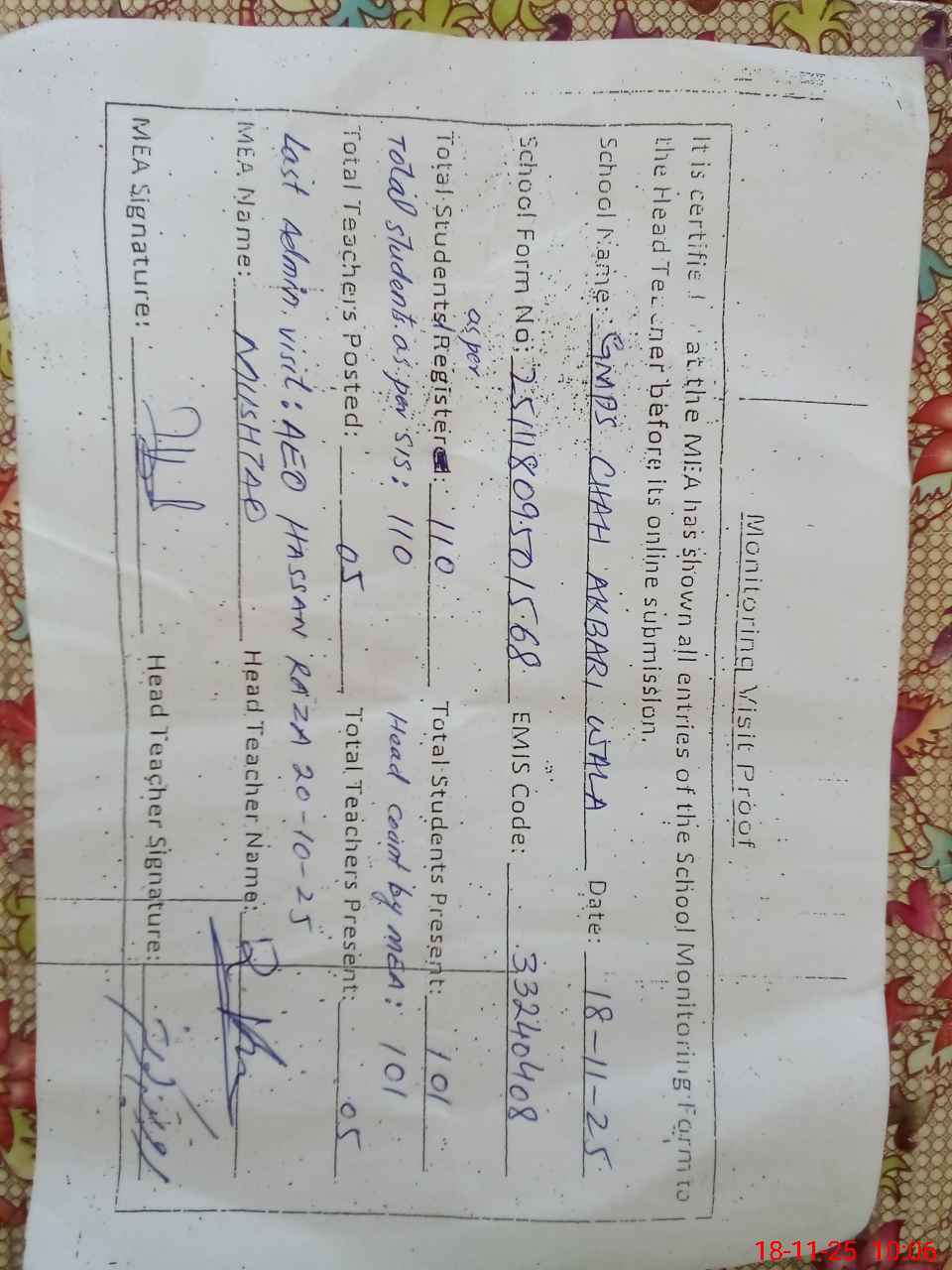 | EMIS Code: 33240408 | Name of School: GMPS CHAH AKBARI WALA | |||