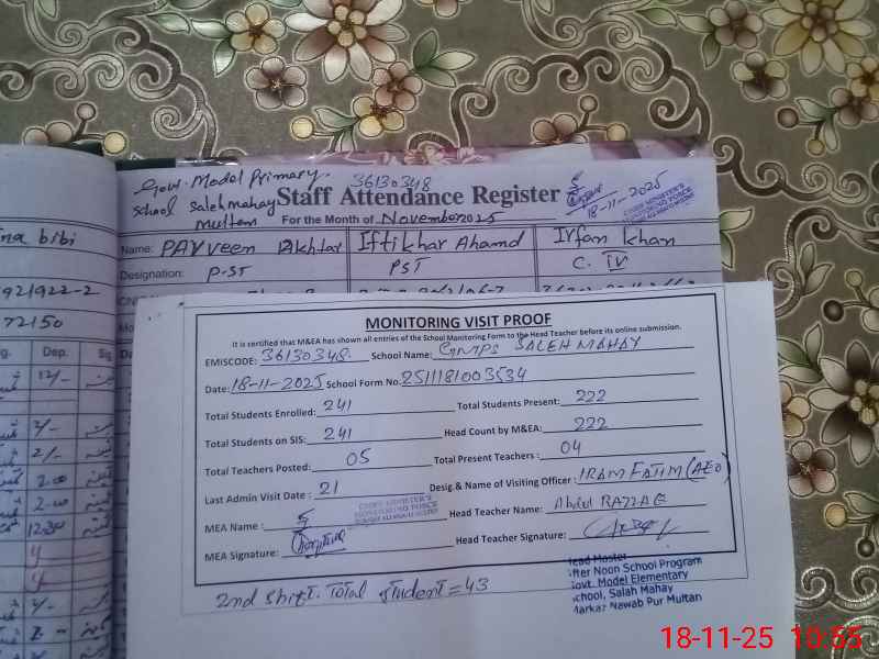 | EMIS Code: 36130348 | Name of School: GMPS SALEH MEHAY POST BOX NAWAB PUR | |||