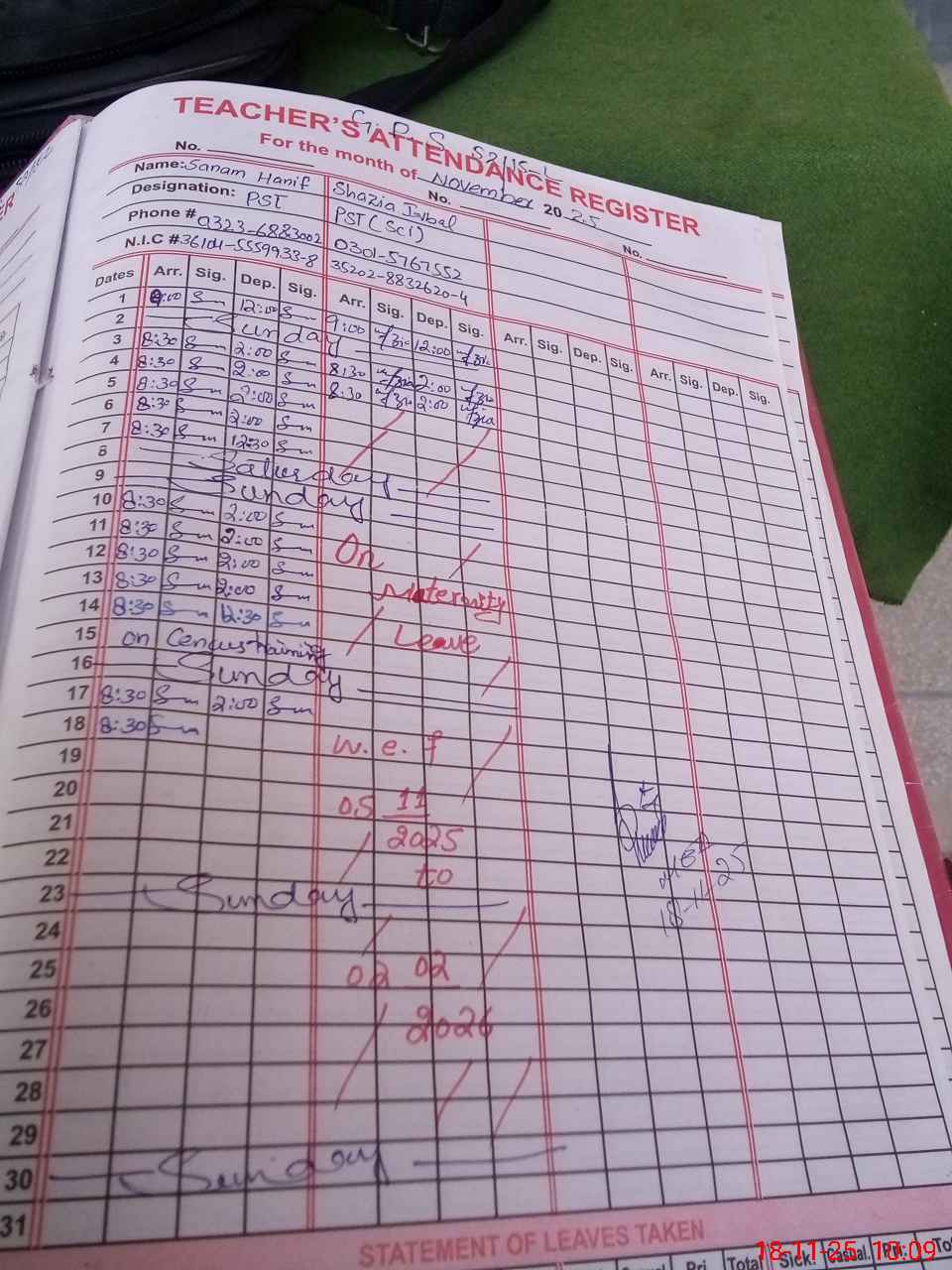 | Name: SH**** IQ**** Designation: (School Headmaster's/Headmistress's) PST Phone/Cell Number: 03**** |
