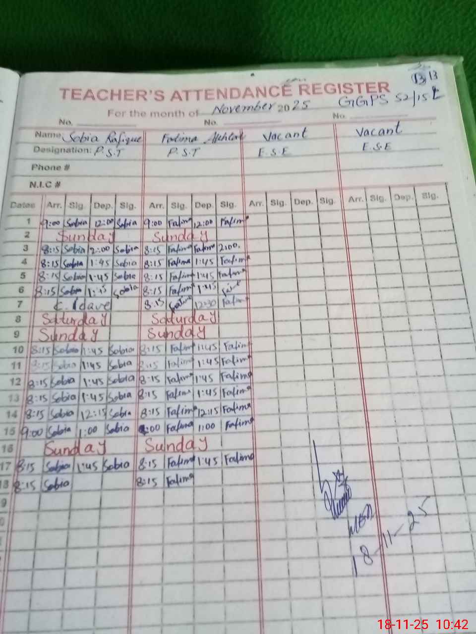 | Name: SO**** RA**** Designation: (School Headmaster's/Headmistress's) PST Phone/Cell Number: 03**** |