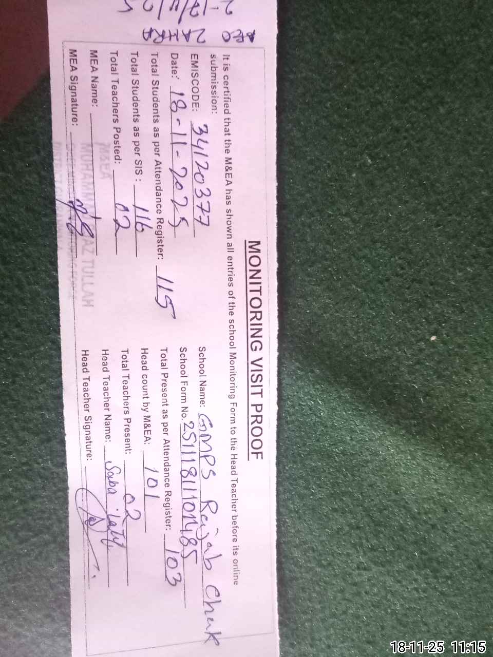 | EMIS Code: 34120377 | Name of School: GMPS RAJAB CHAK | |||