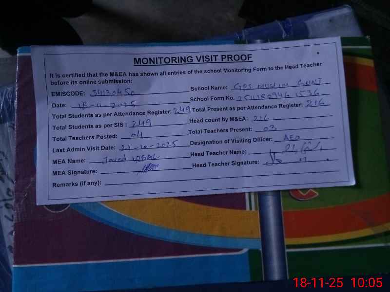 | EMIS Code: 34130450 | Name of School: GPS MUSLIM GUNJ | |||