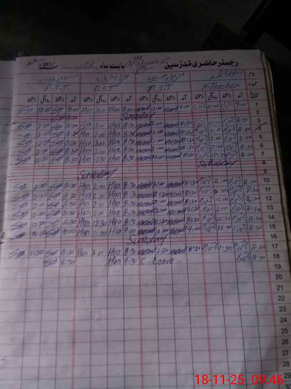 | CNIC | Full Name | Designation | R/C | Absence During Last Calender Month |