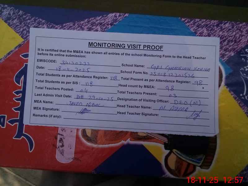 | EMIS Code: 34130233 | Name of School: GPS GHANIAN KOHNA | |||