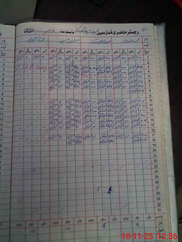 | CNIC | Full Name | Designation | R/C | Absence During Last Calender Month |