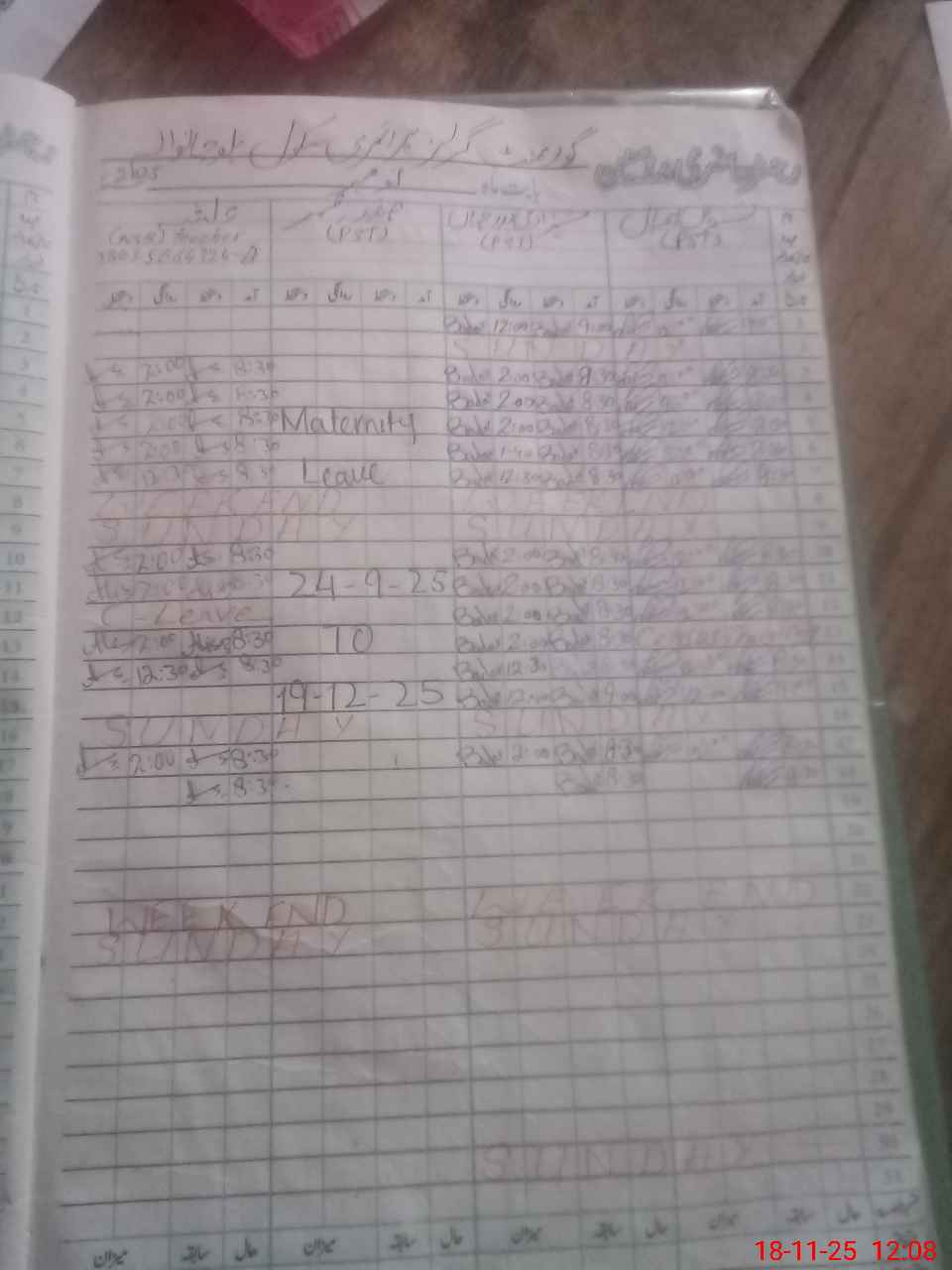 | Leave | Duty | Absent | Maternity | Medical | Ex- Pak |