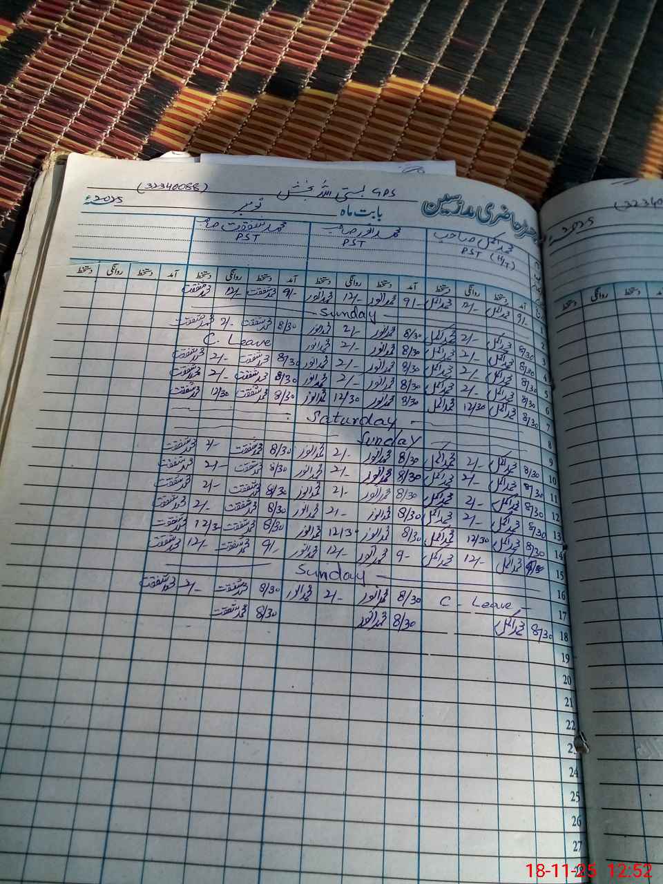 | CNIC | Full Name | Designation | R/C | Absence During Last Calender Month |