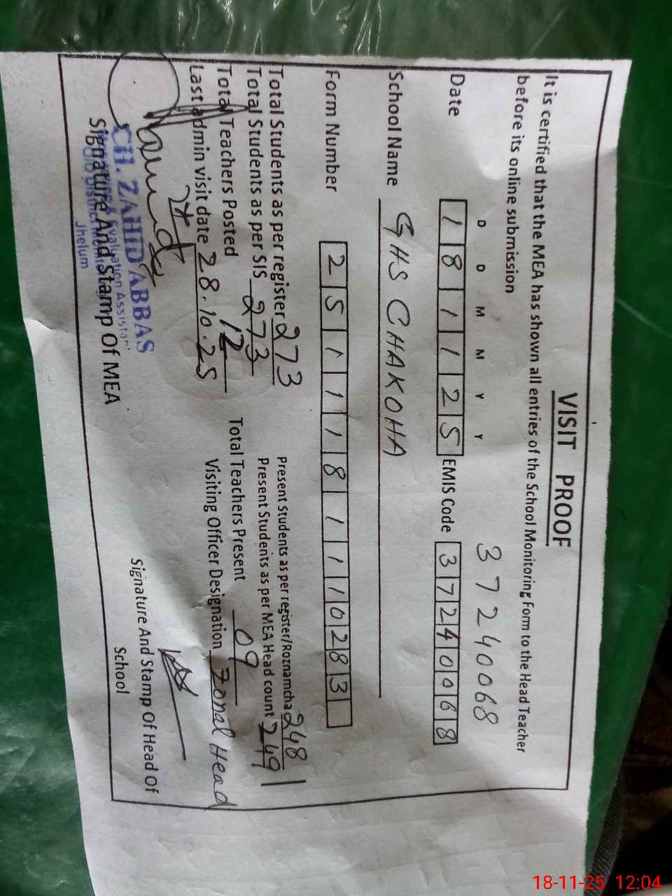 | EMIS Code: 37240068 | Name of School: GHS CHAKOHA | |||