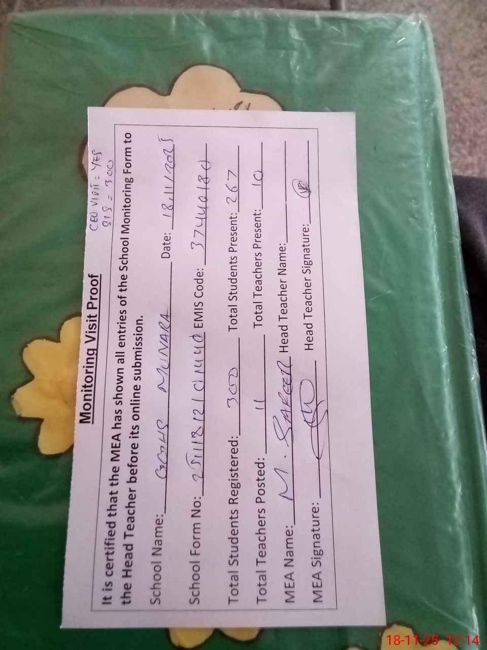 | Certified that this School was Inspected by the Undersigned MEA/DMO Today and the Information Stated Above is as Per Record. | |||||