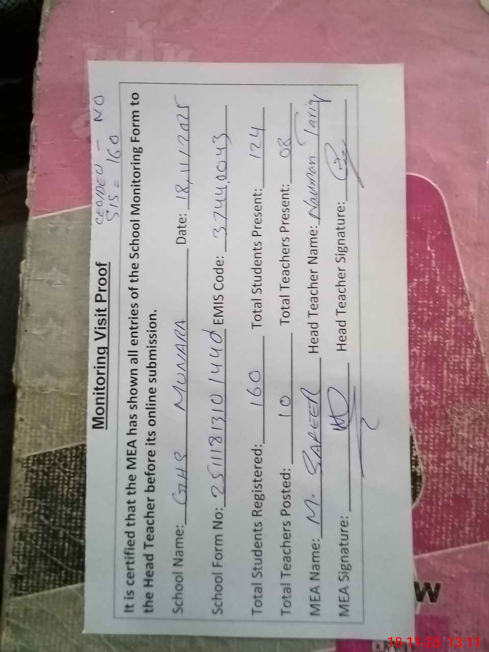 | EMIS Code: 37440043 | Name of School: GHS MUNARA | |||