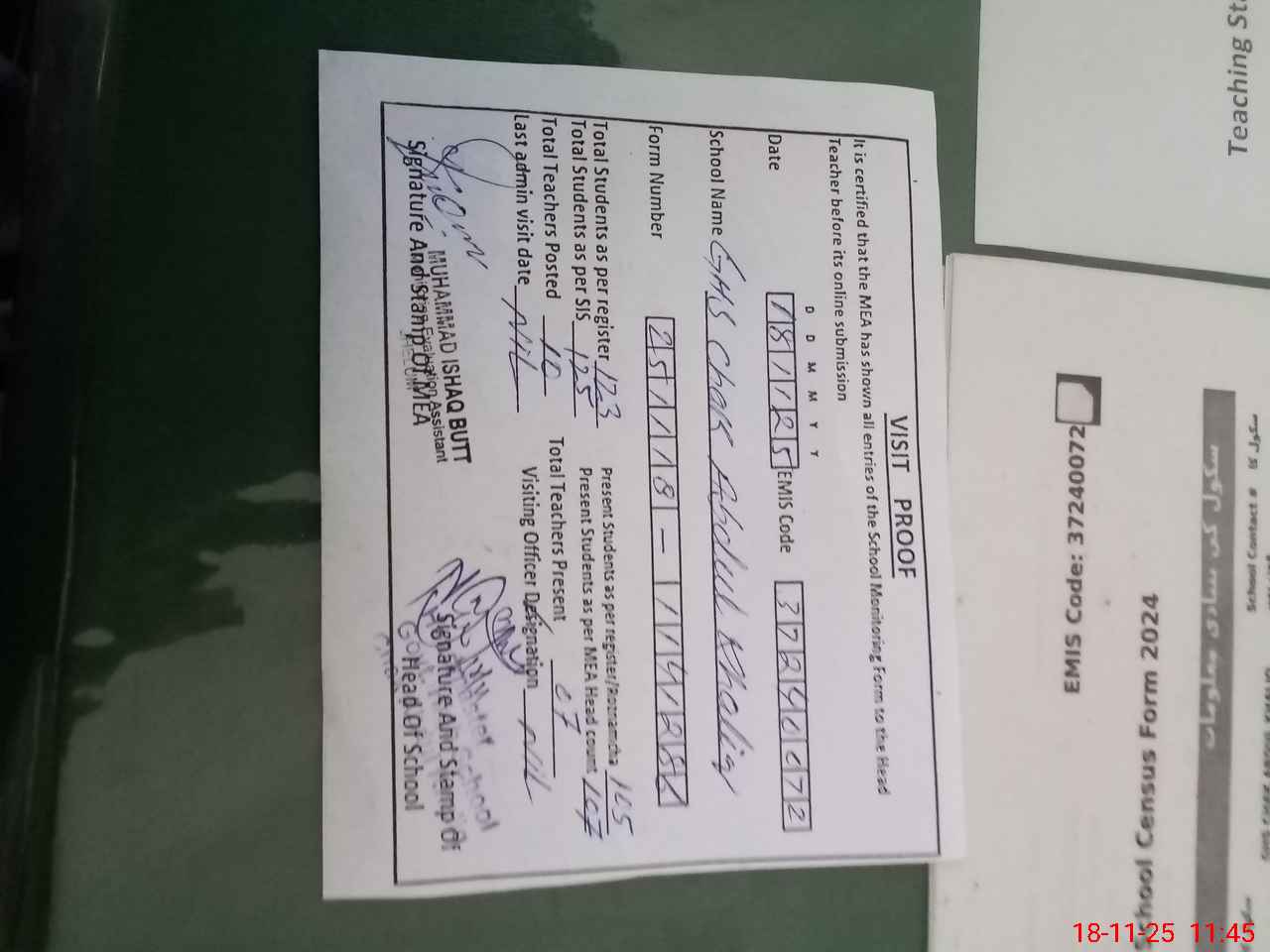 | EMIS Code: 37240072 | Name of School: GHS CHAK ABDUL KHALIQ | |||