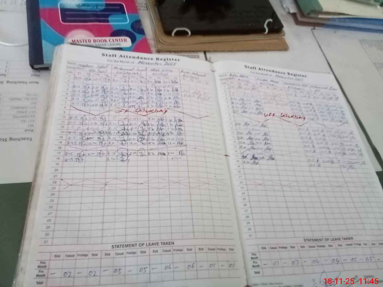 | CNIC | Full Name | Designation | R/C | Absence During Last Calender Month |