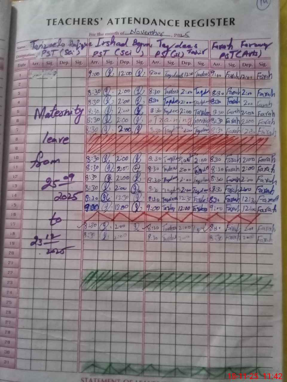 | 36**** | Ta**** Ra**** | Regular | 18 | 0 | 0 | 18 | 0 | 0 | 0 | 0 | 0 | Maternity | |