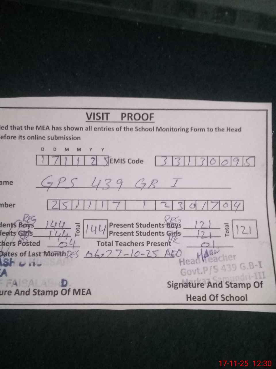 | EMIS Code: 33130095 | Name of School: GPS CHAK 439 GB I SAMUNDRI | |||