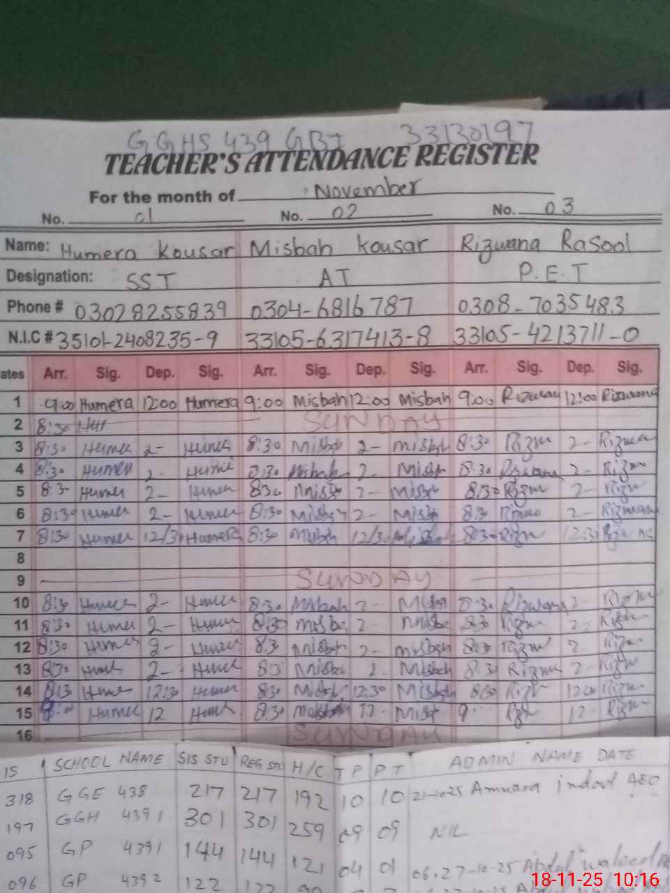 | Name: HU**** KO**** Designation: (School Headmaster's/Headmistress's) S.S.T.(GENERAL ) Phone/Cell Number: 03**** |