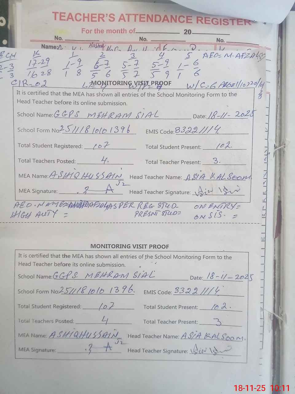 | EMIS Code: 33221114 | Name of School: GGPS MEHRAM SIAL | |||