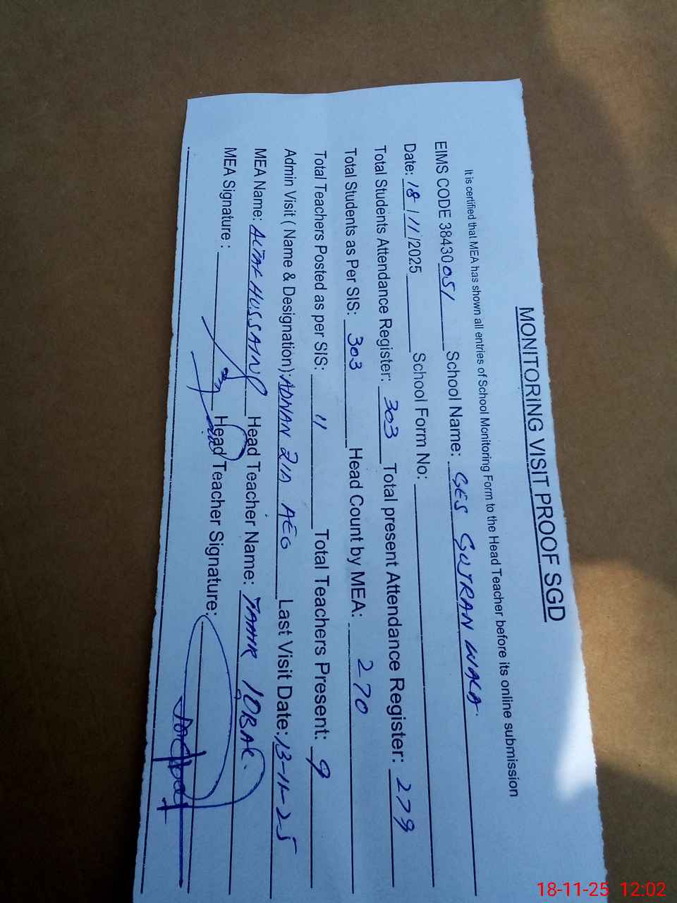 | EMIS Code: 38430051 | Name of School: GES GUJRAN WALA | |||