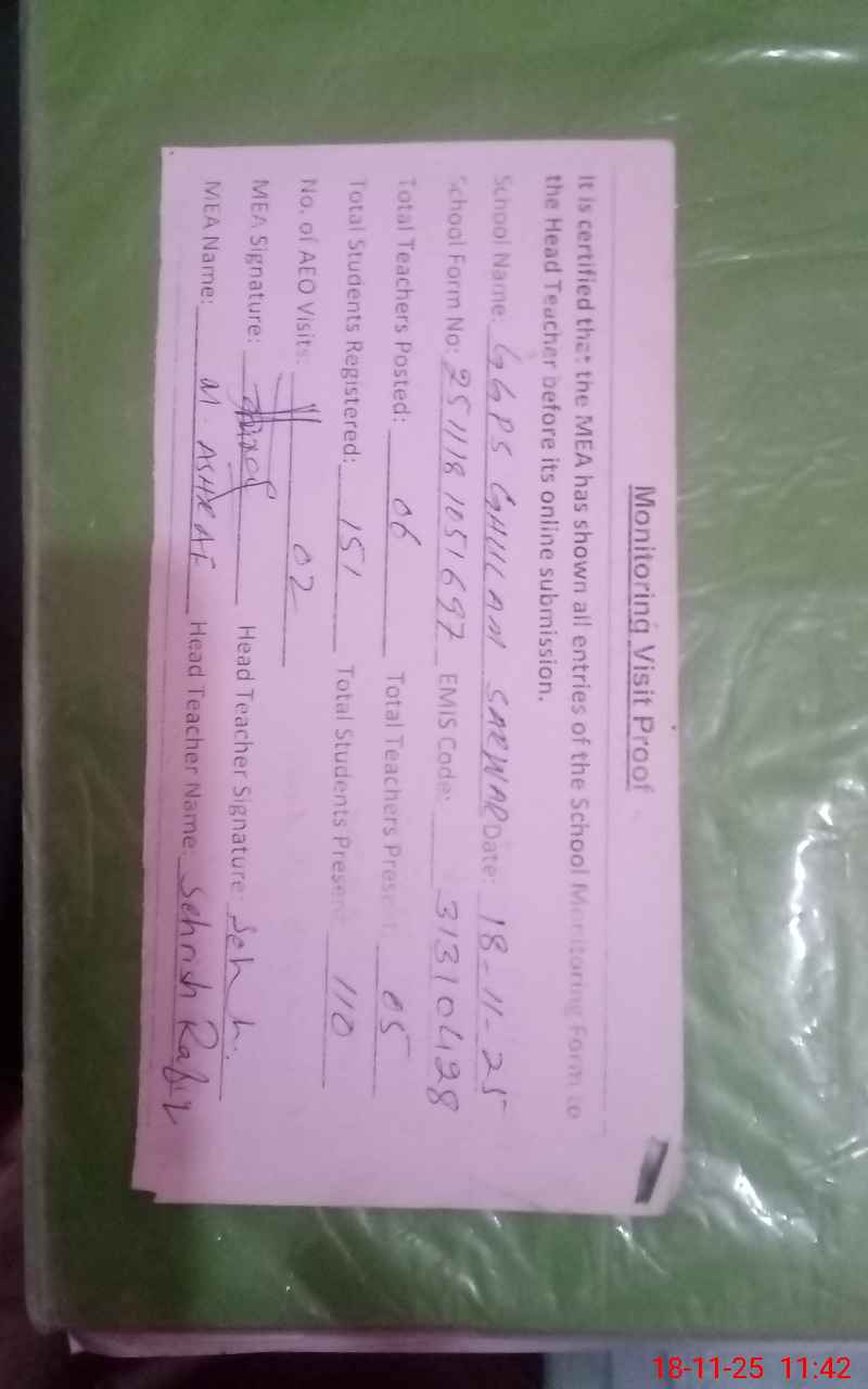 | EMIS Code: 31310428 | Name of School: GGPS BASTI GHULAM SARWAR | |||