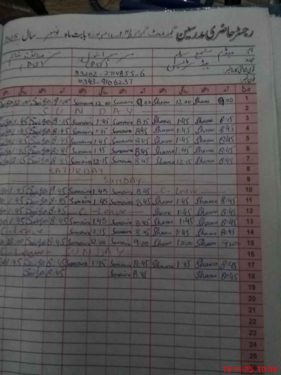 | Name: SH**** SA**** Designation: (School Headmaster's/Headmistress's) H/ M SST Sci Phone/Cell Number: 03**** |