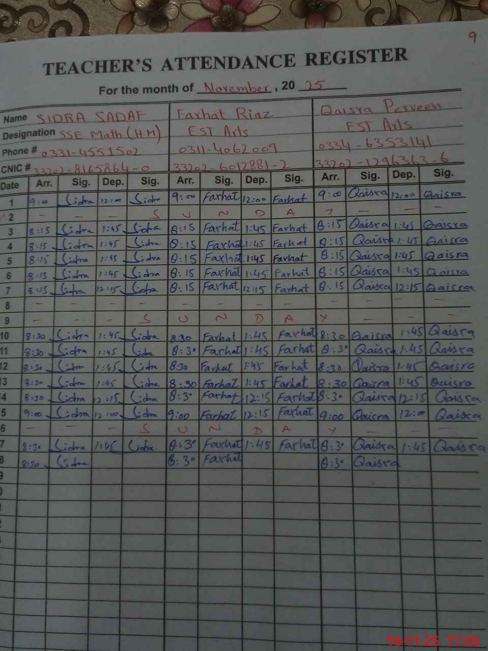 | Name: SI**** SA**** Designation: (School Headmaster's/Headmistress's) SSE MATH Phone/Cell Number: 03**** |