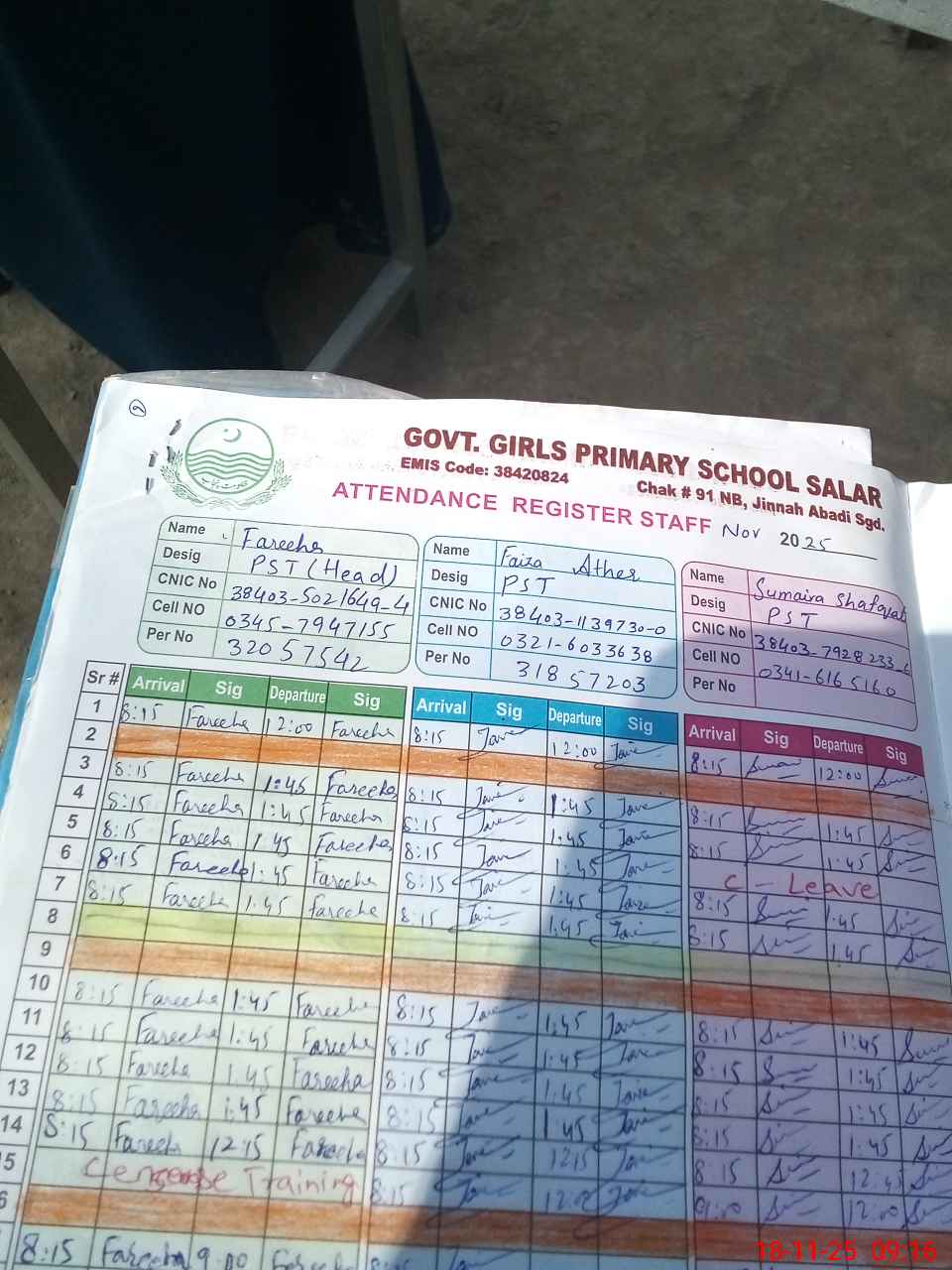 | Name: FR**** Designation: (School Headmaster's/Headmistress's) PST Phone/Cell Number: 03**** |