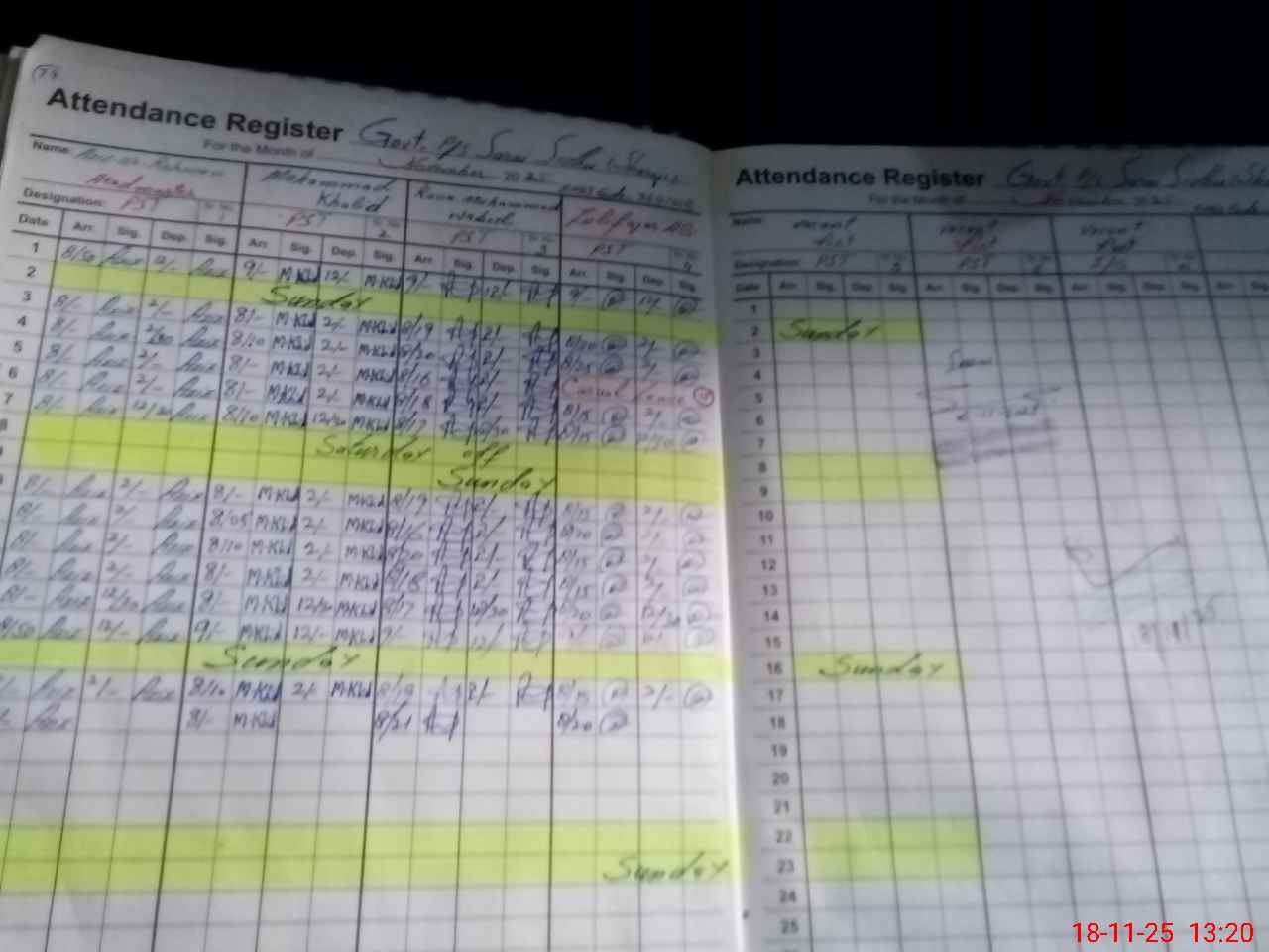 | CNIC | Full Name | Designation | R/C | Absence During Last Calender Month |
