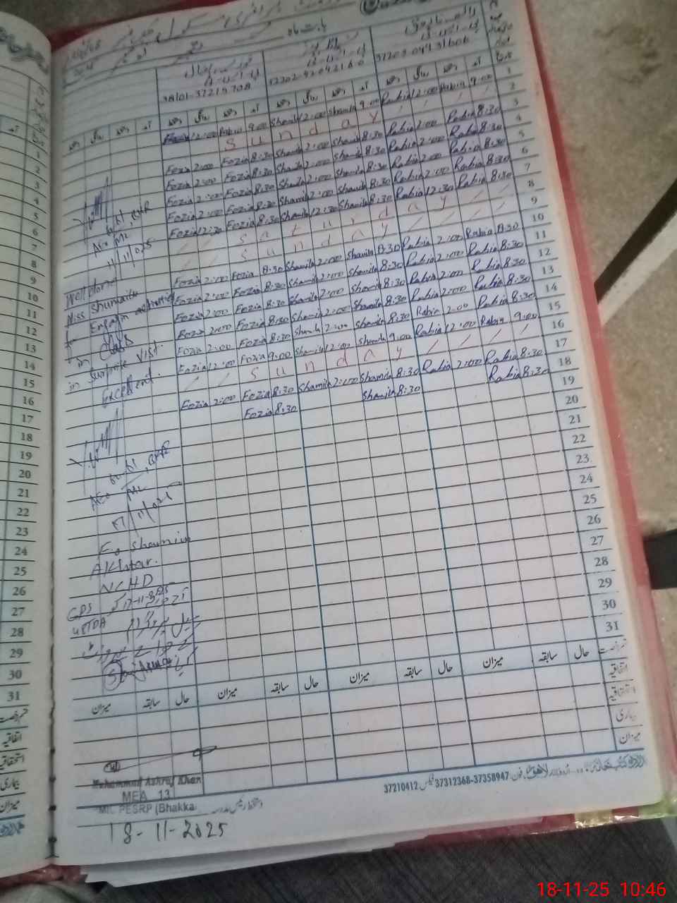 | CNIC | Full Name | Designation | R/C | Absence During Last Calender Month |