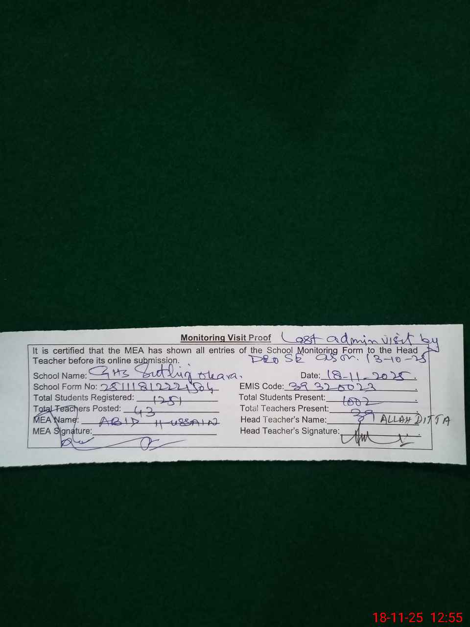 | Remarks (Use Separate Page if Required): Last Administrator visit by DEO SE as on 13 October 2025 | |||||