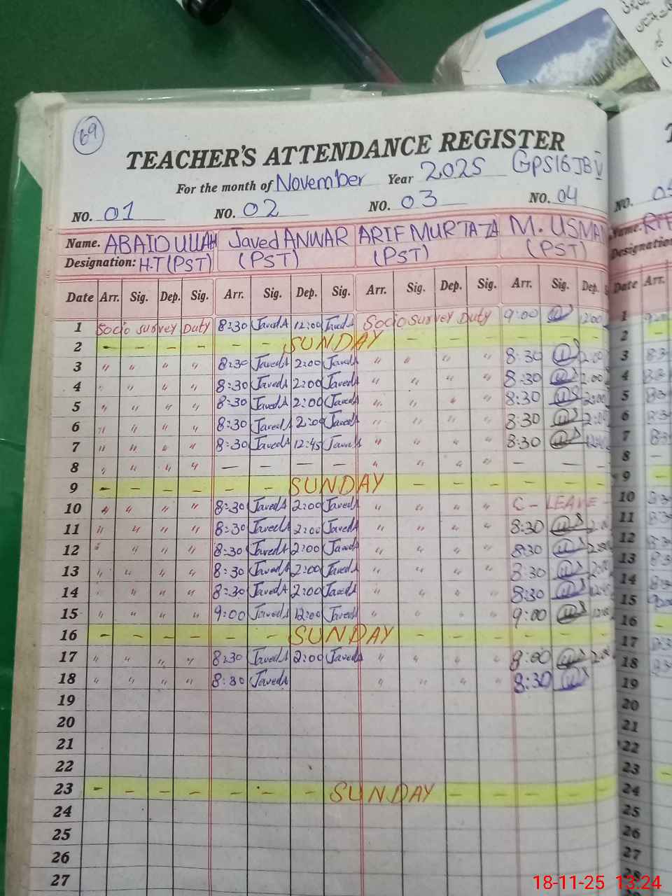 | CNIC | Full Name | Designation | R/C | Absence During Last Calender Month |