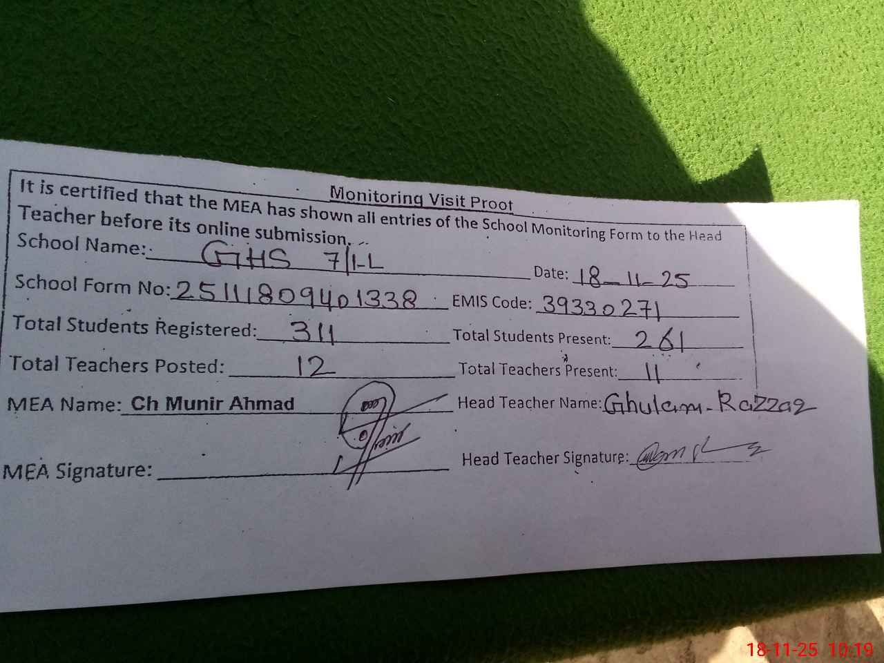 | EMIS Code: 39330271 | Name of School: GHS CHAK NO 7/1.L | |||