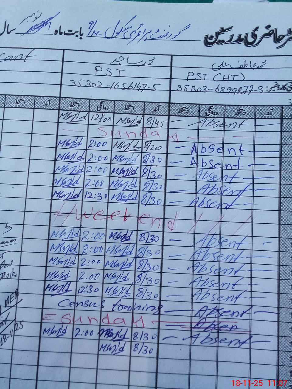 | Name: AS**** HU**** Designation: (School Headmaster's/Headmistress's) PST Phone/Cell Number: 03**** |