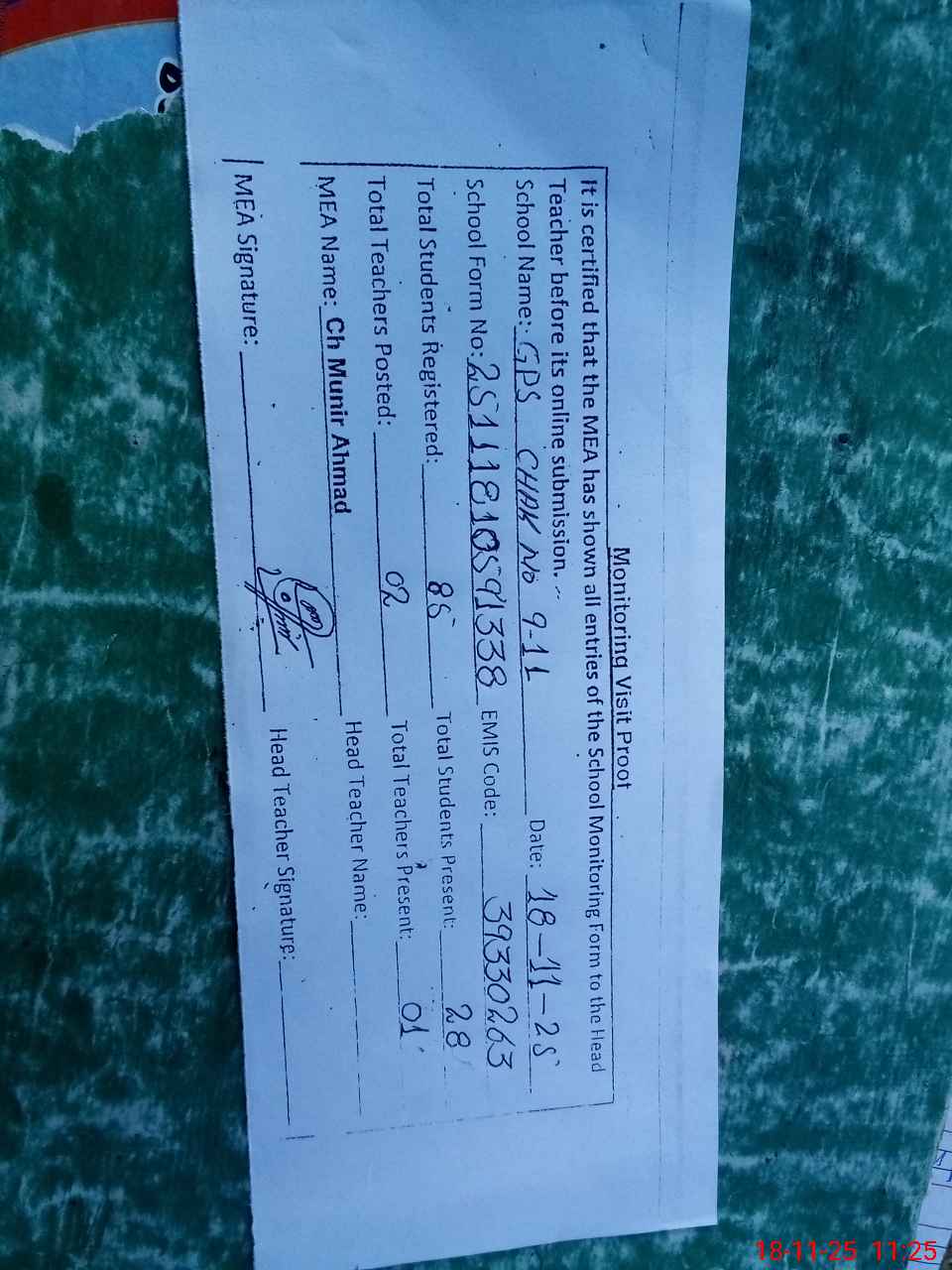| EMIS Code: 39330263 | Name of School: GPS CHAK 9/I.L | |||