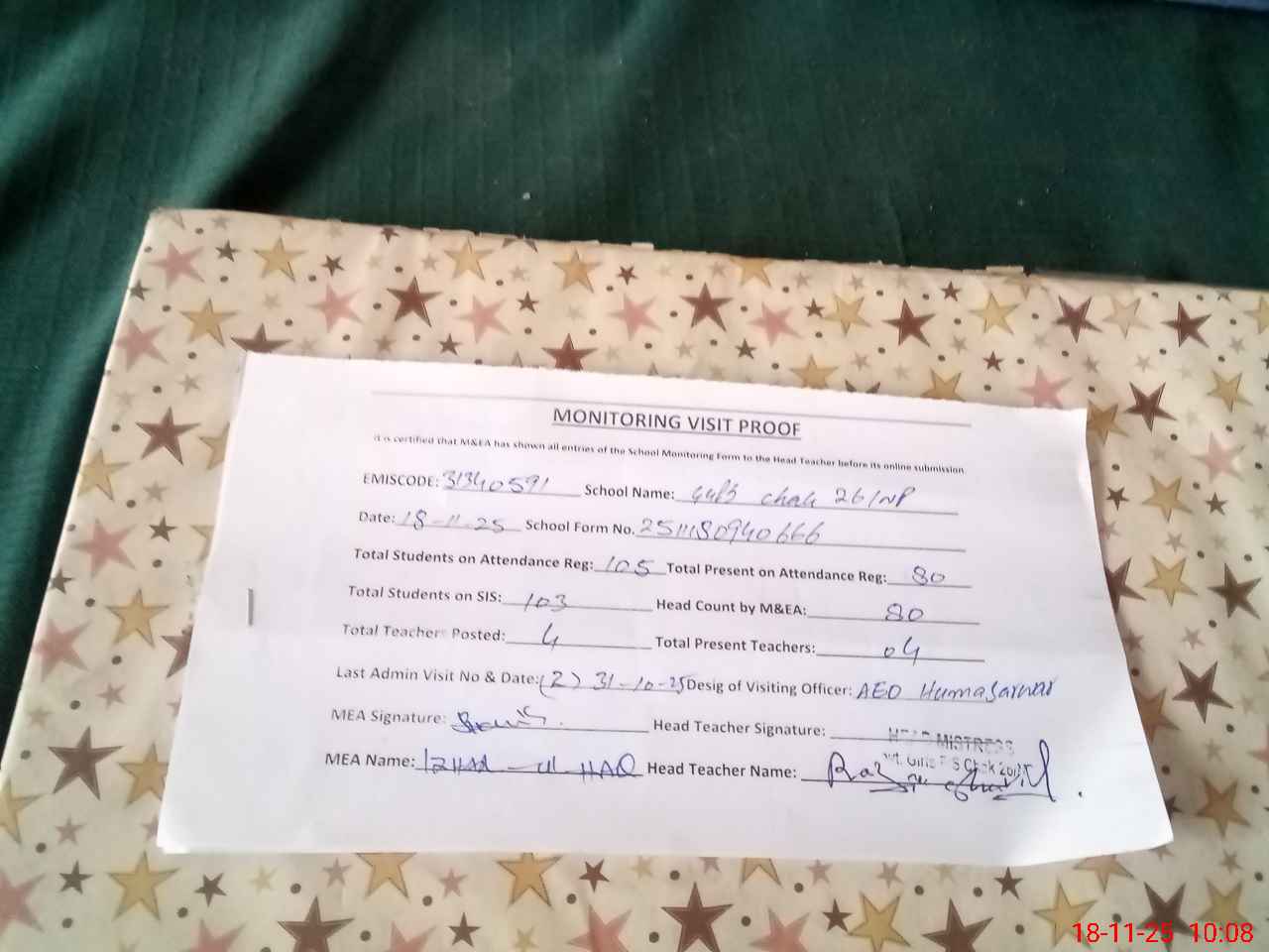 | EMIS Code: 31340591 | Name of School: GGPS CHAK NO. 26/NP | |||
