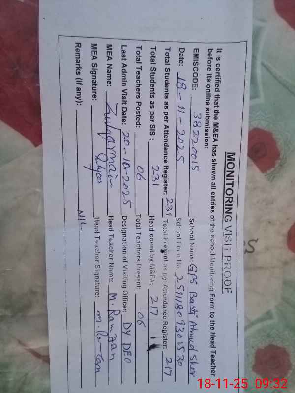 | EMIS Code: 38220015 | Name of School: GPS BASTI AHMED SHER RAHDARI | |||