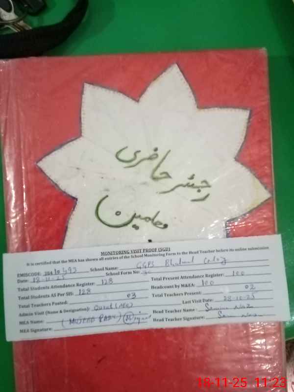 | EMIS Code: 38410493 | Name of School: GGPS BHALWAL COLONY | |||