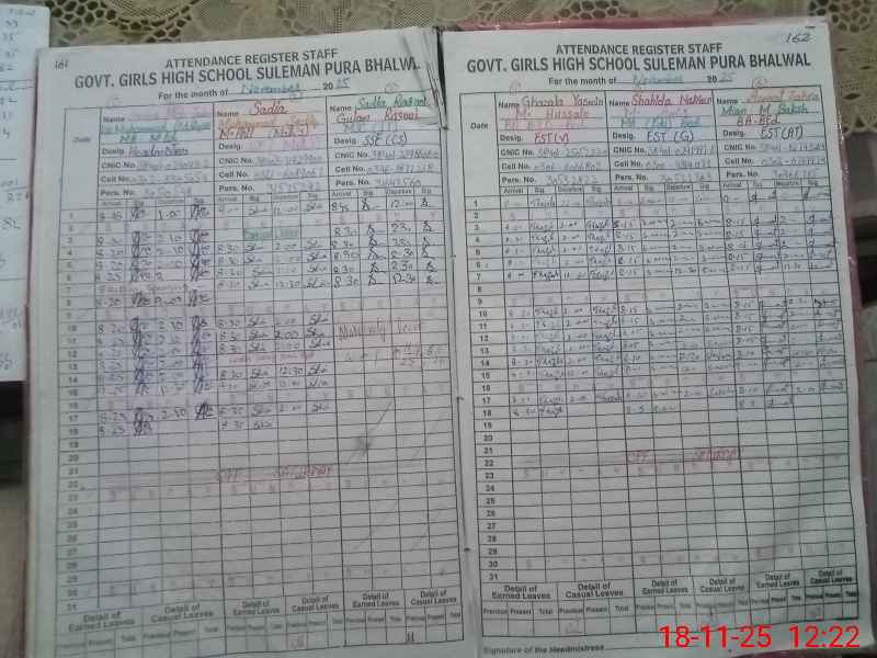 | CNIC | Full Name | Designation | R/C | Absence During Last Calender Month |