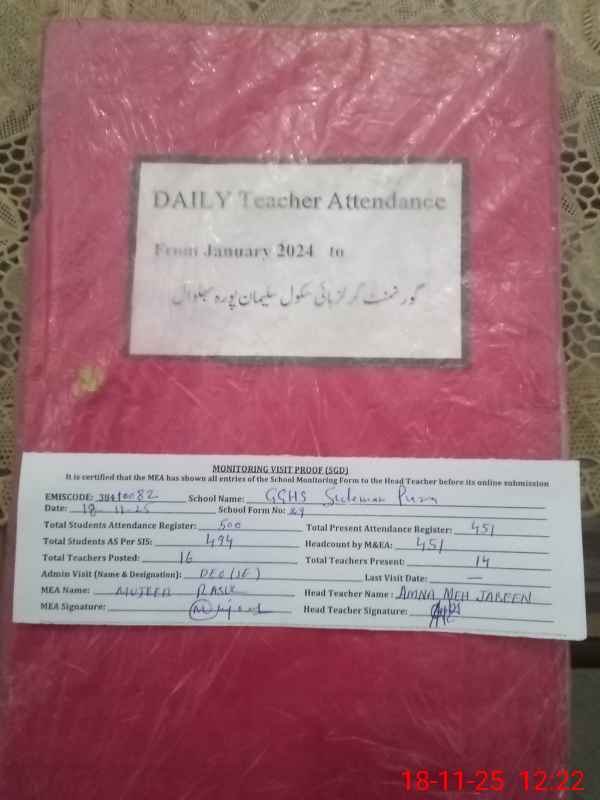 | EMIS Code: 38410082 | Name of School: GGHS SULEMAN PURA | |||