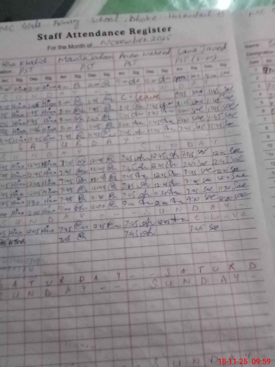 | Name: Hi**** Kh**** Designation: (School Headmaster's/Headmistress's) PST Phone/Cell Number: 03**** |