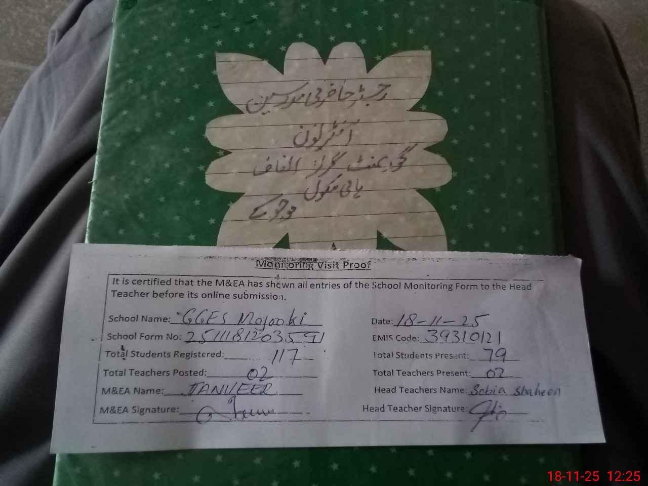 | Attendance Register | Head Teacher | MEA with School | Visit Proof |