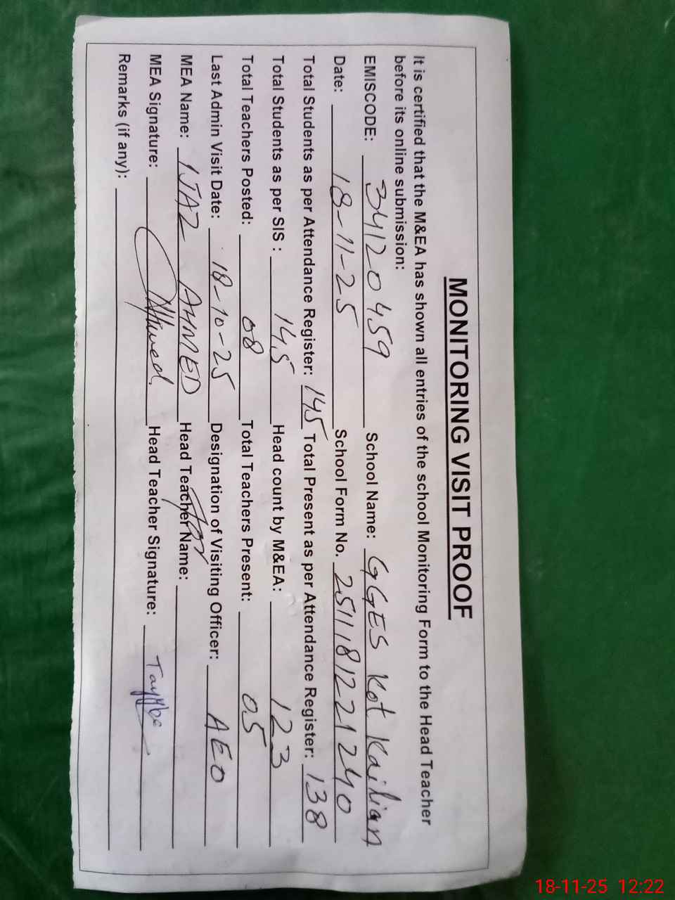 | EMIS Code: 34120459 | Name of School: GGES KOT KALIAN | |||