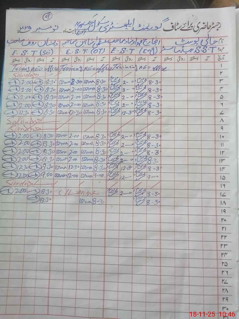 | Remarks (Use Separate Page if Required): Teacher Binish Ehsan is absent without any leave since 1st March 2025 but no legal action against said teacher | |||||