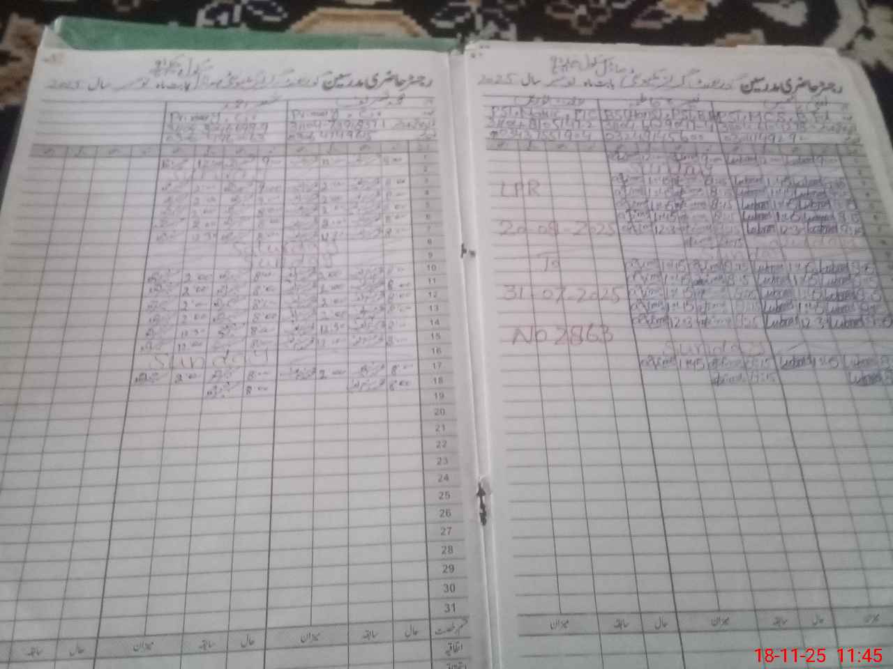 | CNIC | Full Name | Designation | R/C | Absence During Last Calender Month |