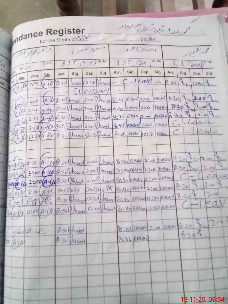 | CNIC | Full Name | Designation | R/C | Absence during last cal. month |