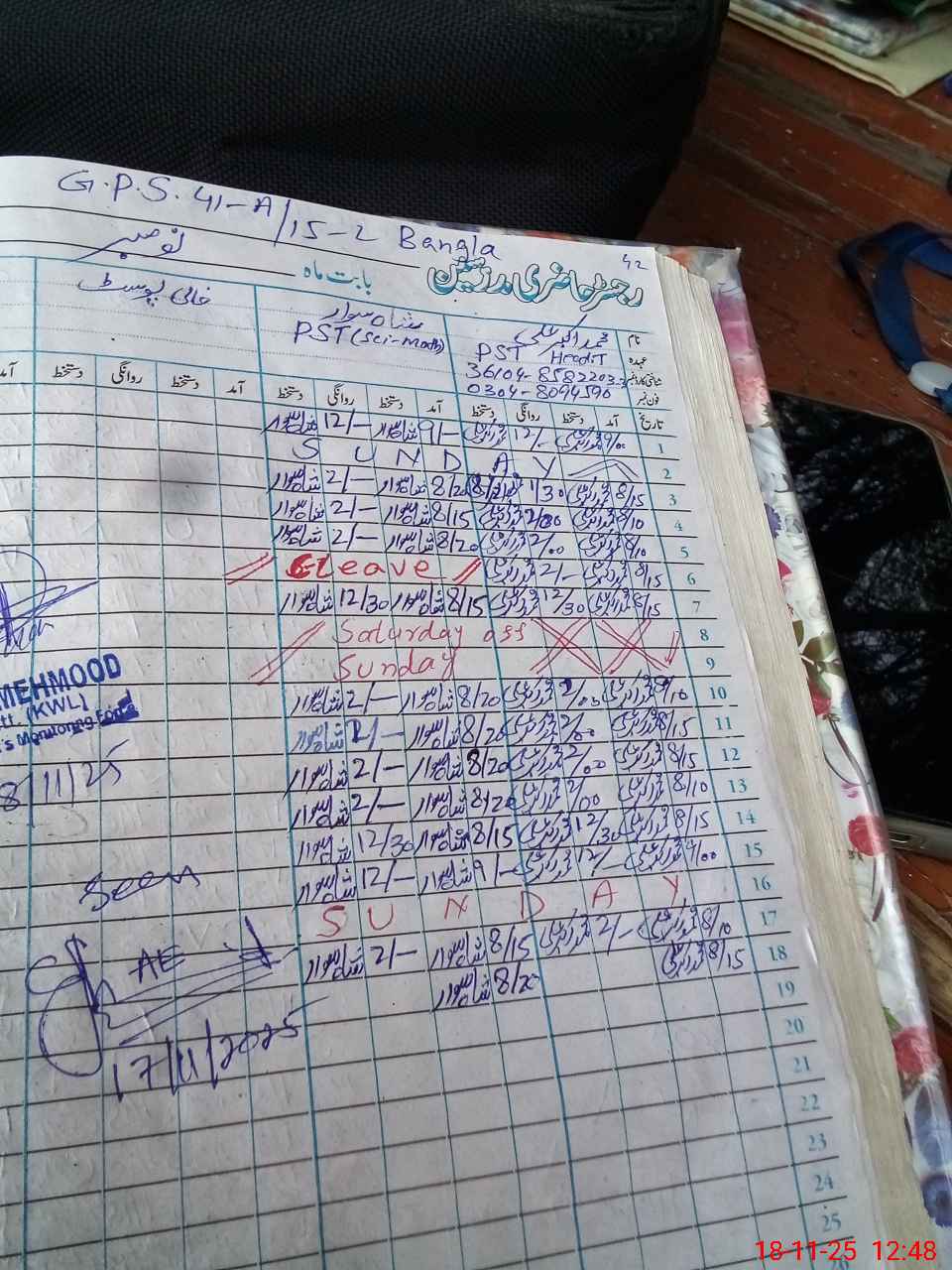 | Name: MU**** AK**** AL**** Designation: (School Headmaster's/Headmistress's) PST Phone/Cell Number: 03**** |