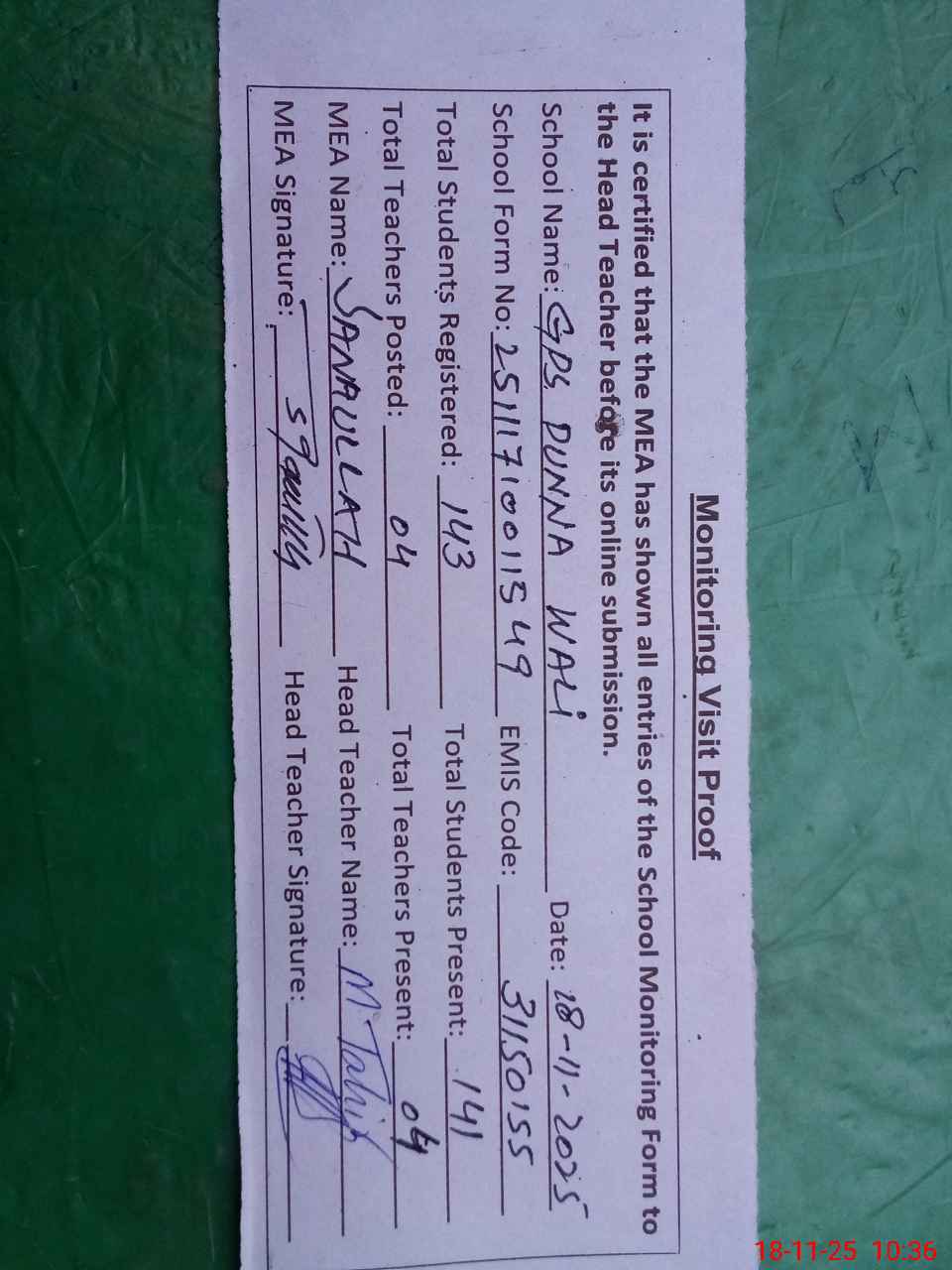| EMIS Code: 31150155 | Name of School: GPS PUNA WALI | |||