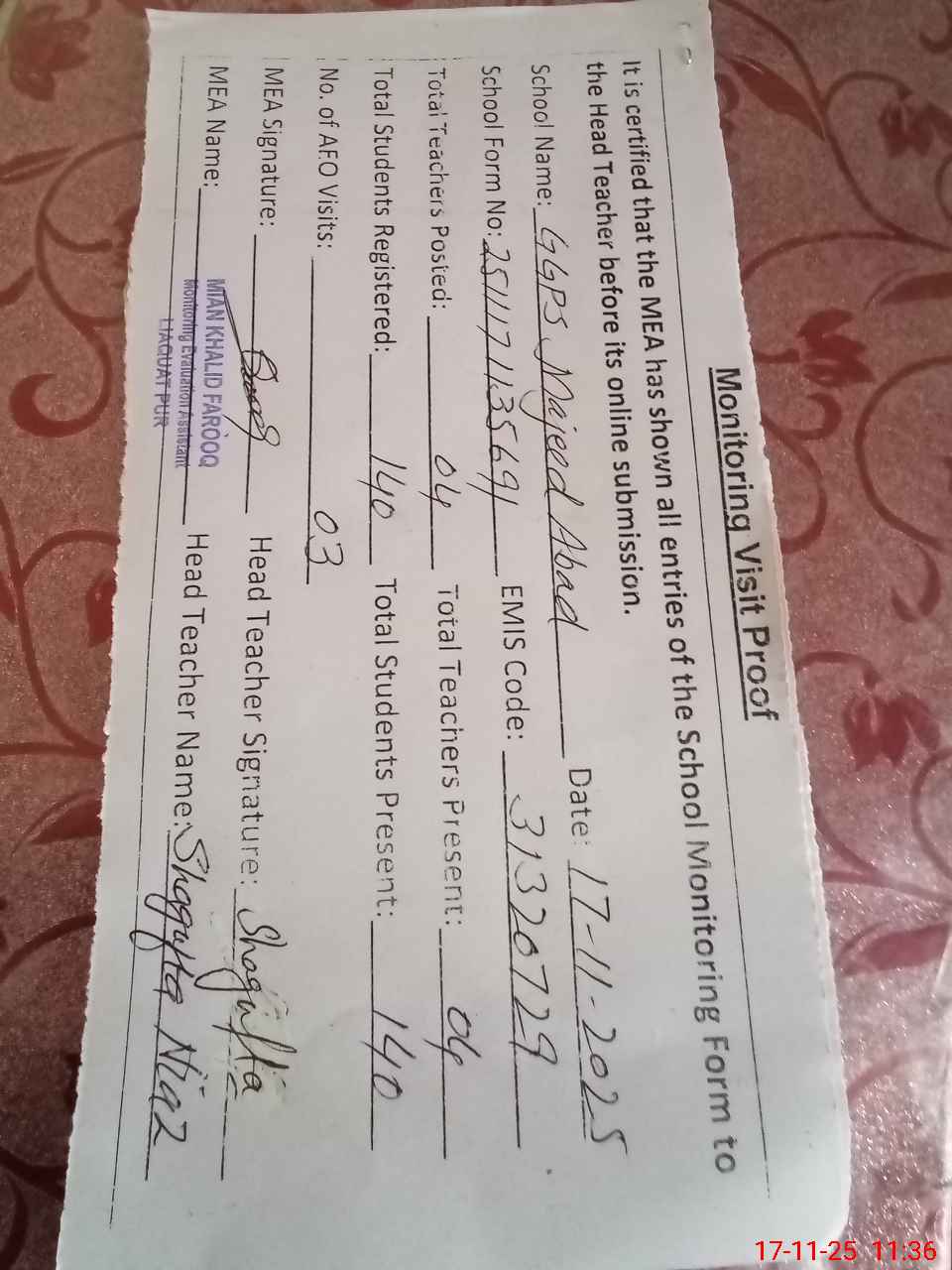 | EMIS Code: 31320729 | Name of School: GGPS MAJEED ABAD | |||