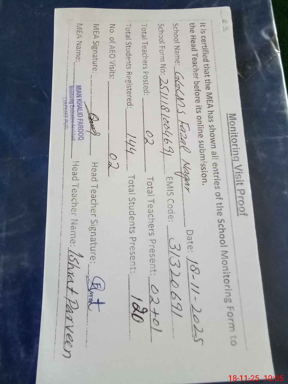 | EMIS Code: 31320691 | Name of School: GGCMS FAZAL NAGAR | |||