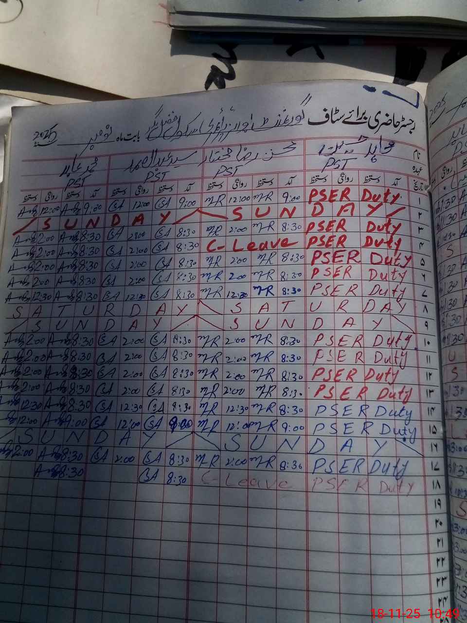| CNIC | Full Name | Designation | R/C | Absence During Last Calender Month |